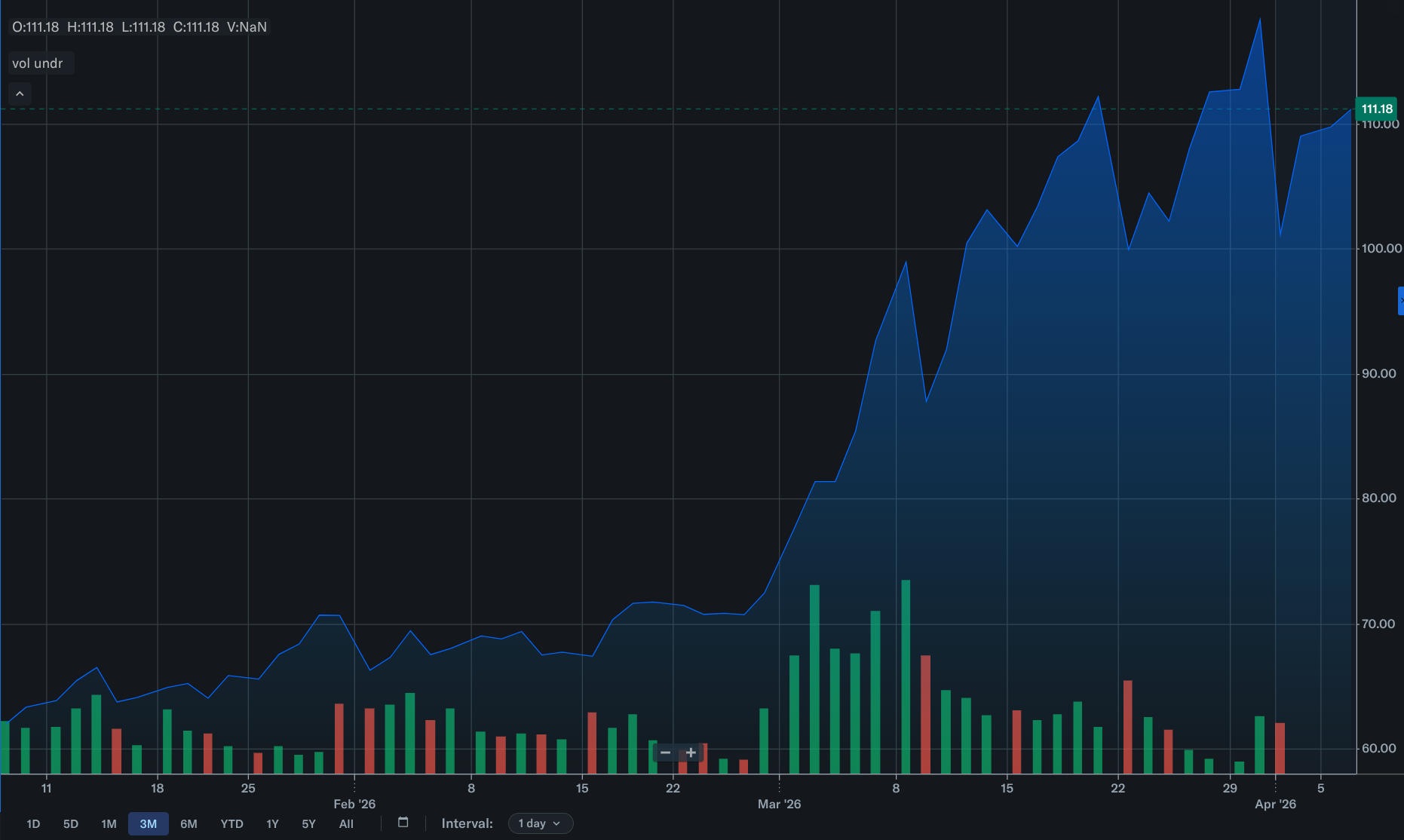Après un premier ajustement à la baisse les jours suivant le début de la crise, le Brent n’est pas descendu en dessous de 100 dollars depuis un mois.
